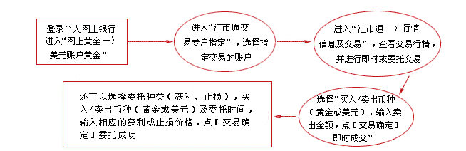 网上银行和电话银行为您进行美元和黄金之间的买卖提供了简便、顺畅的通道,您无须去外汇交易市场和我行营业网点,通过网上银行或电话银行即可随时随地方便、快捷地查询黄金(盎司)和美元的买入/卖出价,及时进行美元和黄金之间的买卖。通过网上银行和电话银行,您可以实现黄金账户余额查询、黄金交易明细查询、黄金(盎司)/美元汇率播报、建立获利委托、止损委托、查询委托结果、进行即时交易等功能。